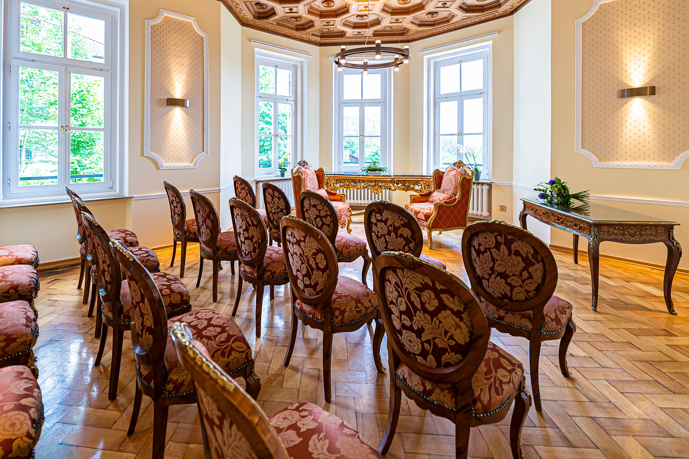In unserer Eventlocation in Bayern können Sie nicht nur Ihre Hochzeit feiern, sondern sich auch trauen lassen! Als Partner des Standesamt Zwiesel stehen Ihnen der Raum Genf sowie die Terrasse für das Ja-Wort zur Verfügung. Im Anschluss zelebrieren Sie Ihren großen Tag in den weiteren Räumlichkeiten der barocken Villa, mit elegantem Interieur und in romantischem Ambiente.