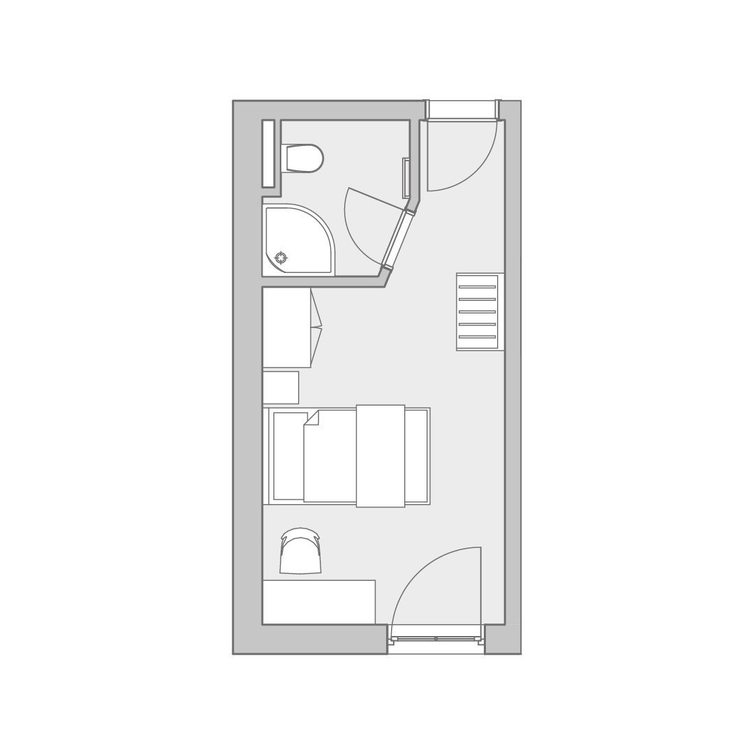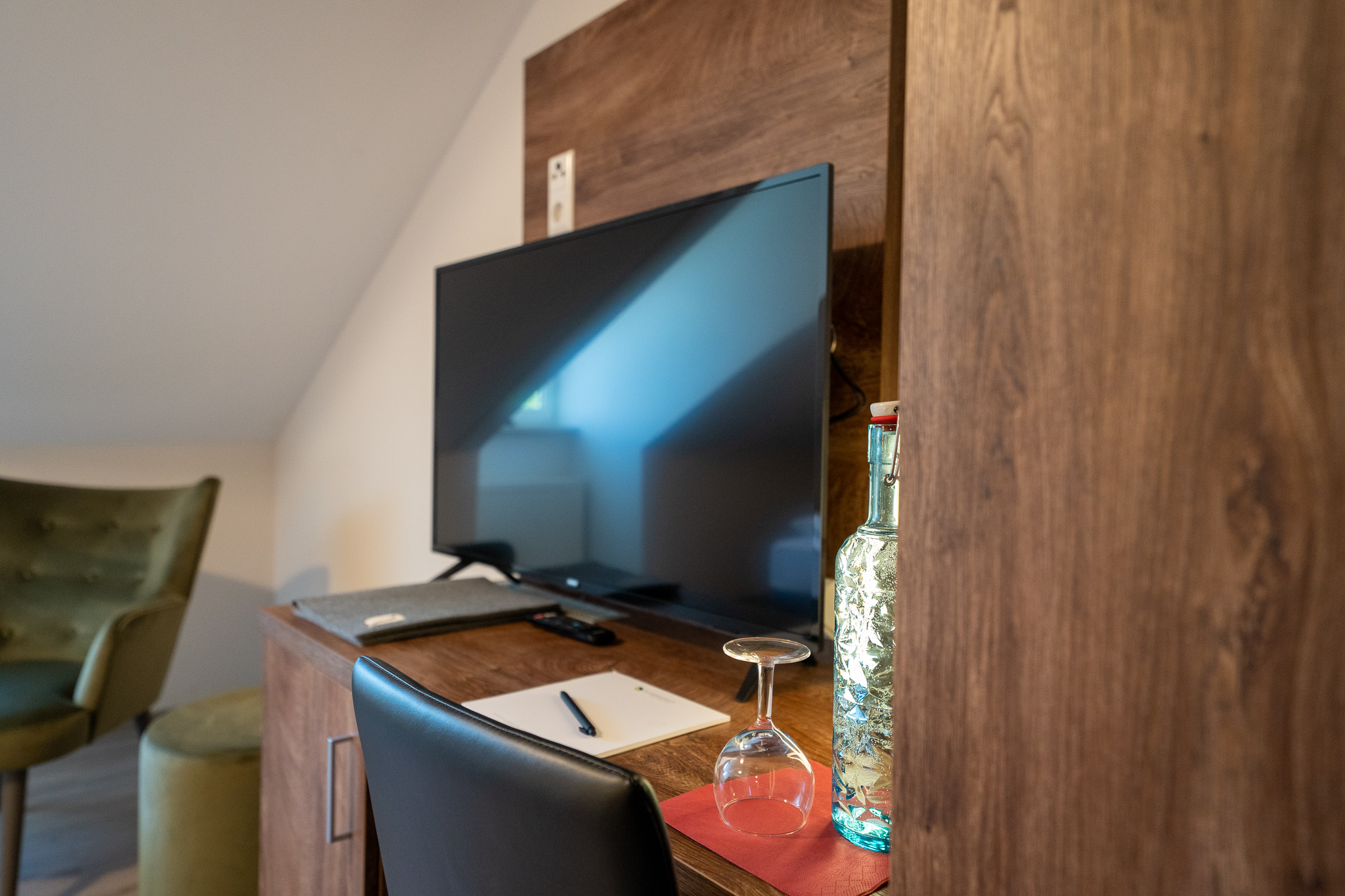 Our single rooms offer great comfort in a small space. Ideal to switch off for a few days in the Bavarian Forest. The comfortable single bed invites you to dream, desk, minibar and seating area round off the comfortable stay, just like the wonderful view of the Zwiesel valley and the surrounding mountains. The bathroom leaves nothing to be desired. Besides an illuminated make-up and shaving mirror, a hairdryer, high-quality cosmetic products and a fluffy bathrobe, the bathroom has a shower or a bathtub.